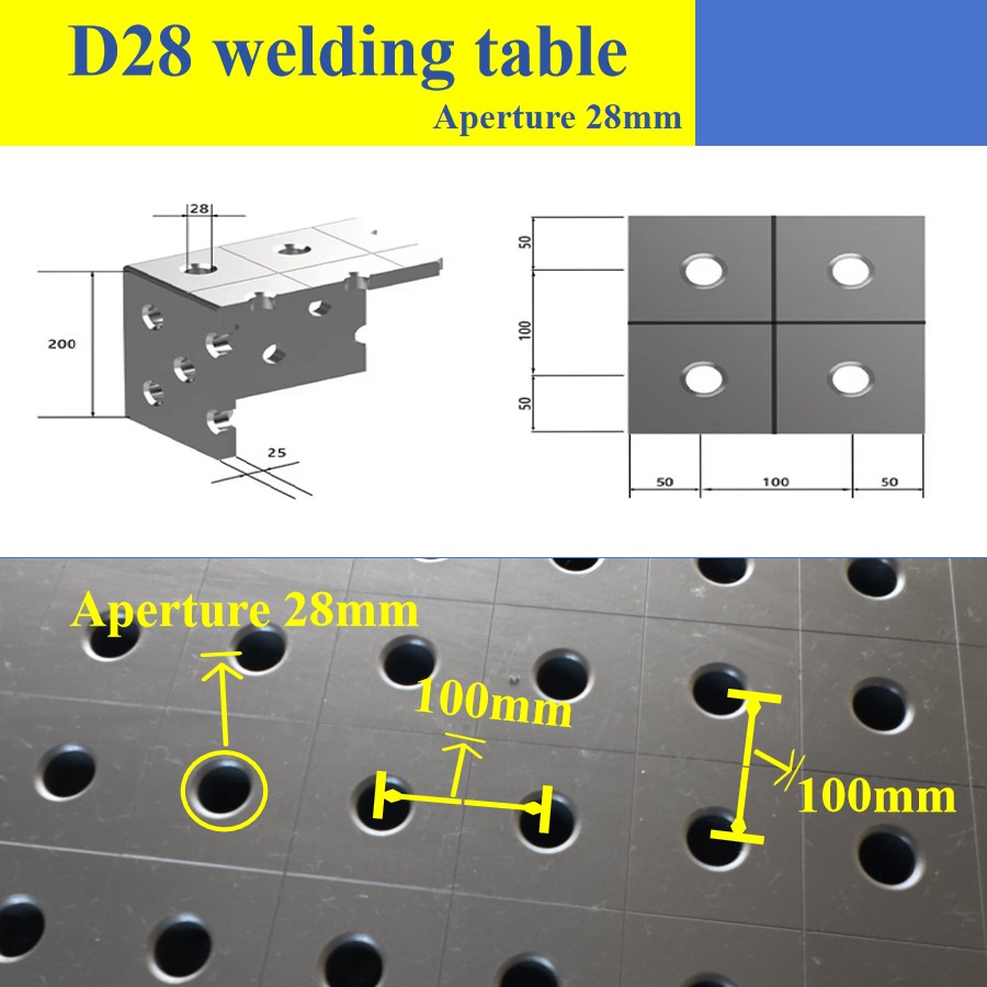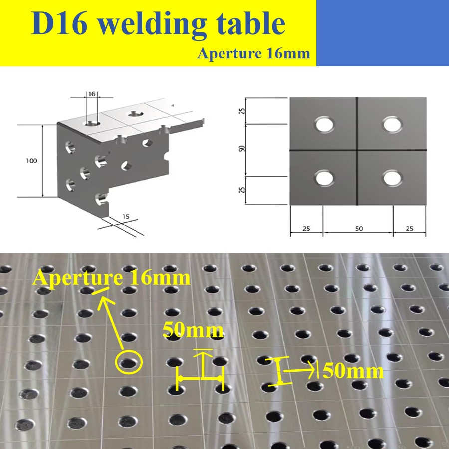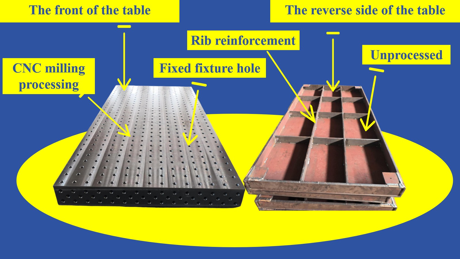 Multifunktionale Anpassungsfähigkeit: Die Tischplatte verfügt über vorgebohrte Positionierungslöcher und Vorrichtungsmontagepositionen zur schnellen Befestigung verschiedener Werkzeugvorrichtungen, kompatibel mit verschiedenen Prozessen wie manuellem Lichtbogenschweißen, Argon-Lichtbogenschweißen und Schutzgasschweißen.