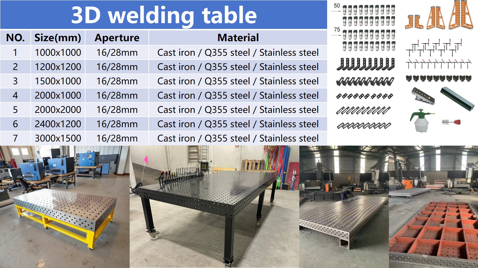 Kleine Werkstätten/Reparaturen: Wählen Sie ein Basismodell mit einem Tischlochdurchmesser von 16 mm, anpassbarer Größe und einer Tragfähigkeit von 500–1000 kg, um sporadischen Schweiß- und Kleinteilebearbeitungsanforderungen gerecht zu werden.